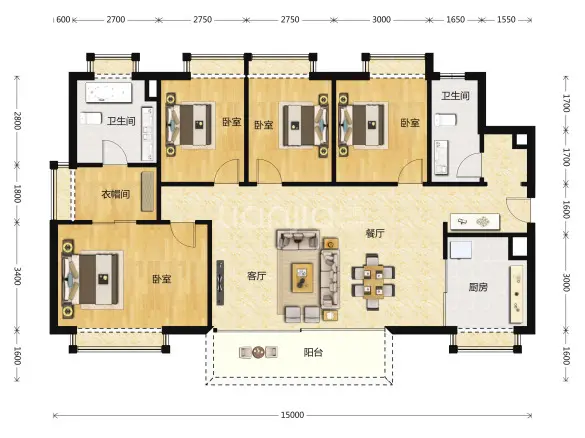 以客餐厅开放一体式设计方式,