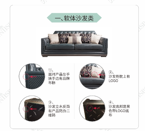 (3)沙发立水反面有产品防伪码;