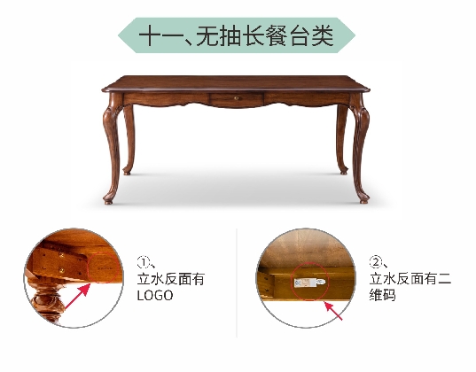十一、无抽长餐台类鉴别方法: